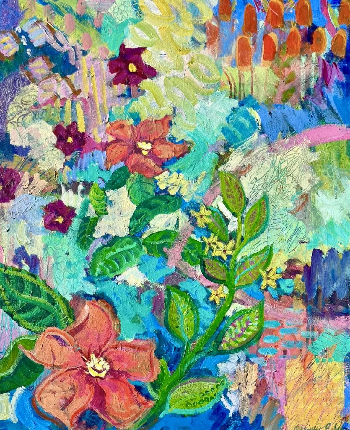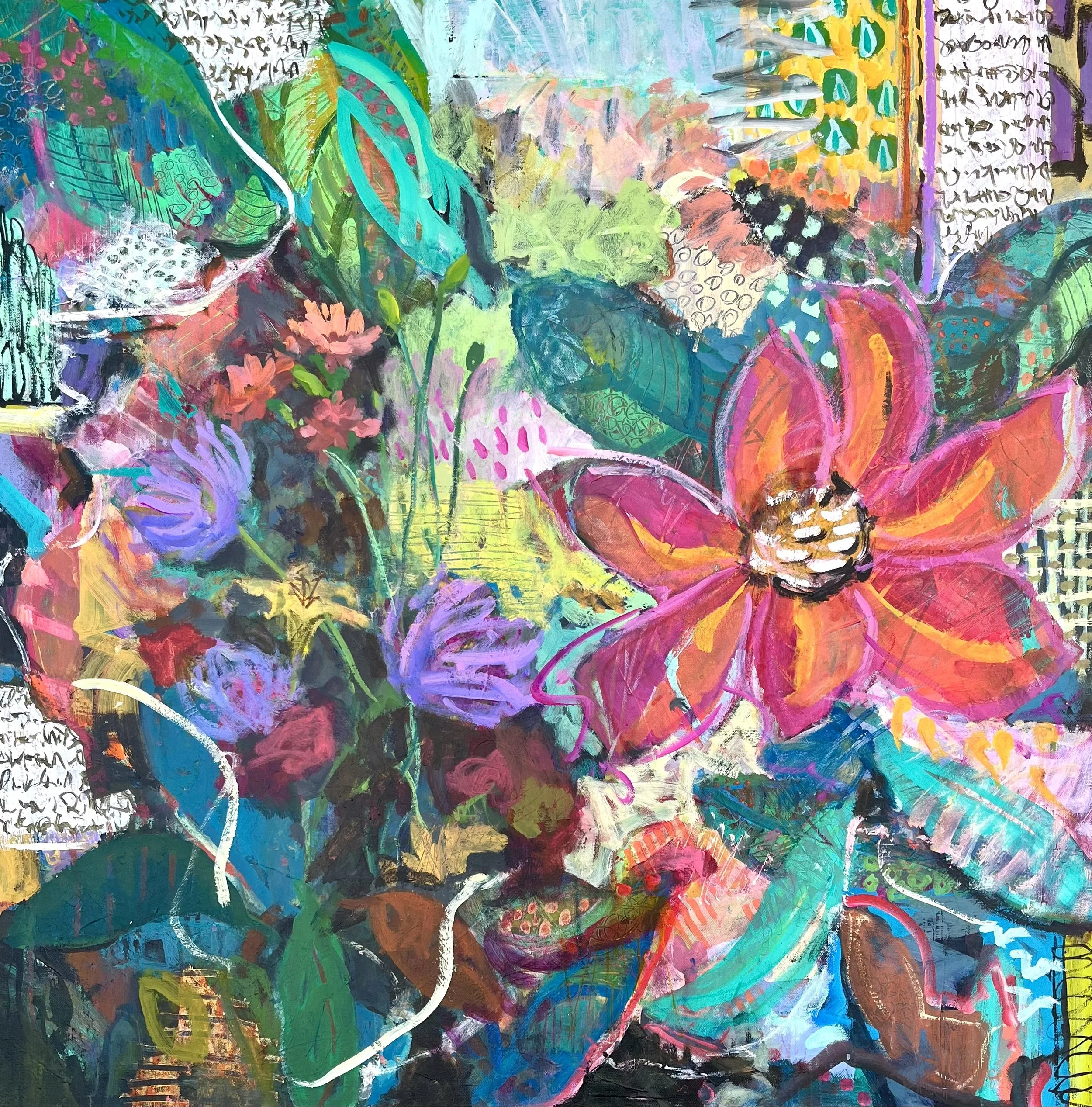 Paty is excited to showcase her recent pieces from a concentrated period of studio work giving the show a strong thread of energy and cohesion. Rather than focusing on one location, she invites the viewer into the bright, floral, and emotionally resonant colors that conger a sense of aliveness, connection, and possibility. This collection offers a chance to slow down, look closely, and experience color as a mood and a place.